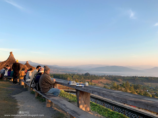 入座在觀景臺的座位上,點上饅頭等早點,和一壺熱茶取暖看日出,特別寫意。